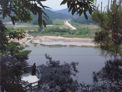 “Two waters”, an artist-initiative project centered on “researching garden traditions and landscapes altered by continual urbanization inSouthKorea and China,”*has traveled for two years though three regions: Goyang and Seoul in South Korea, Xiamen in China and New York in the U.S. Alongside the project title “Two waters,” it has a new Korean title, Gubi Sai (±ÁÀÌ »çÀÌ; between curves). Making a detour around its meaning, Gubi implies curves of water including streams, rivers, sea and oceans, or bodies of these waters; and Sai signifies two, as borders or thresholds exist between these bends of water.